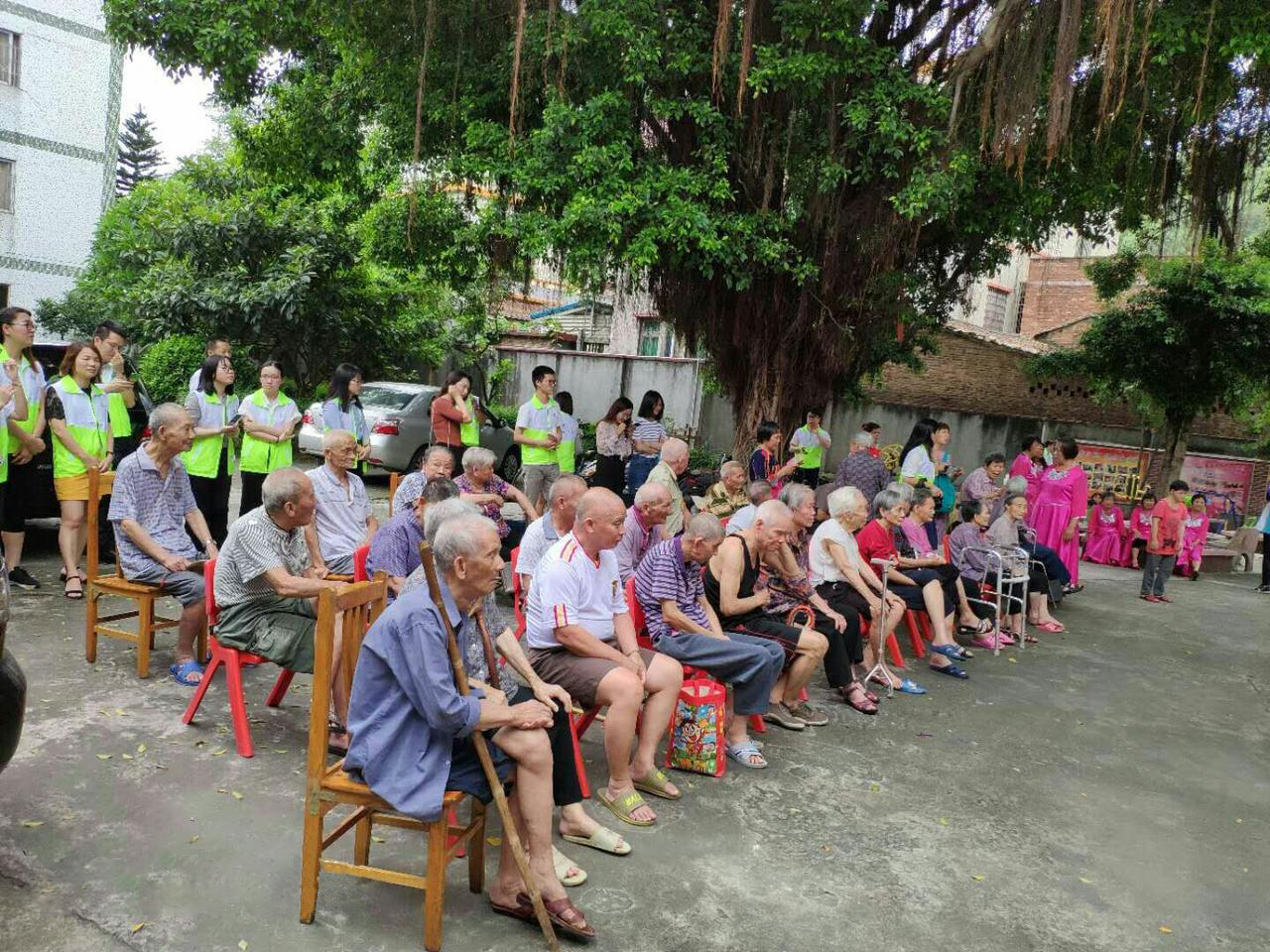 公公婆婆早早地找好座位坐好