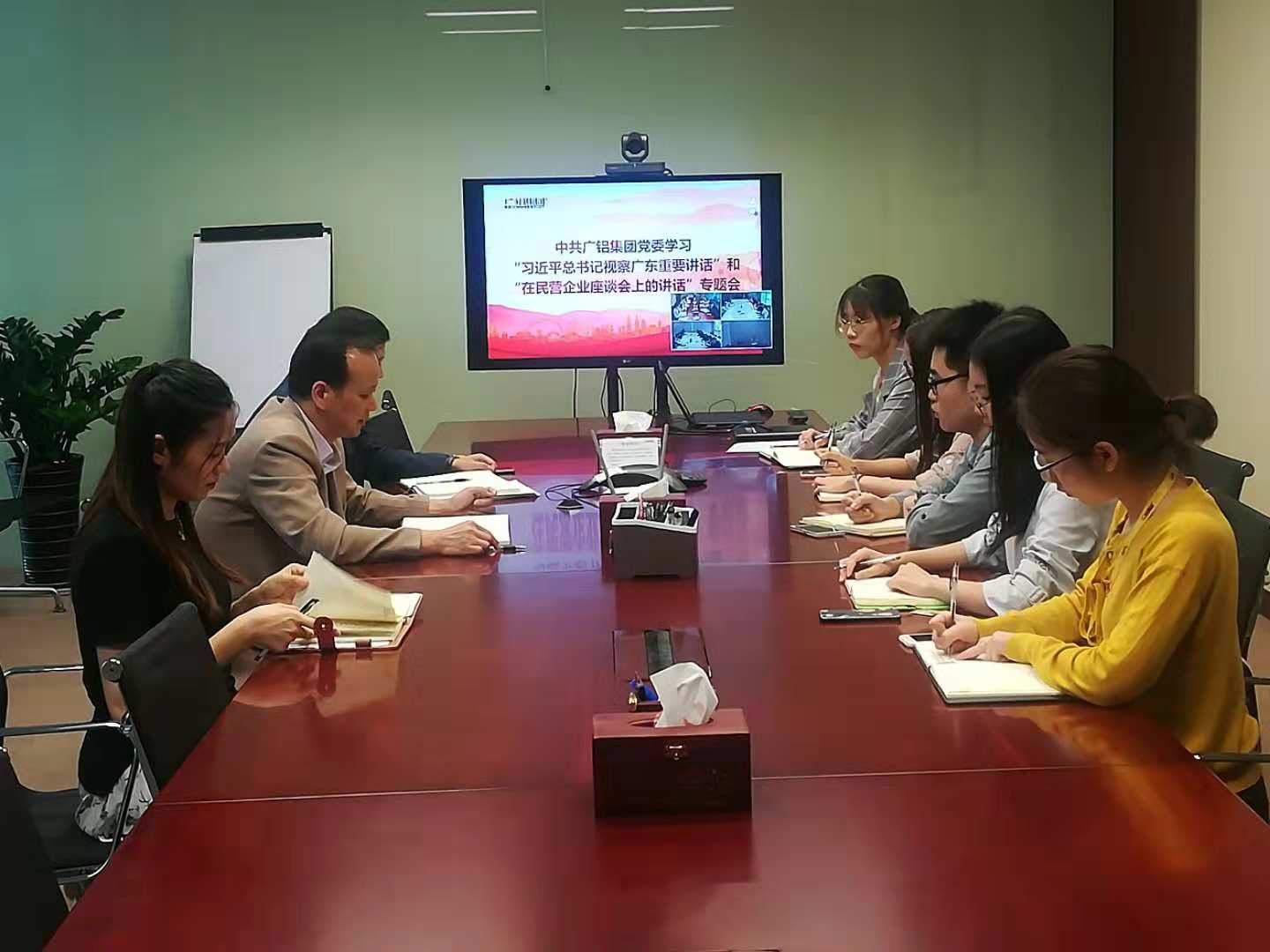 11月7日,廣鋁集團(tuán)黨委組織召開圍繞“習(xí)近平總書記視察廣東重要講話”和“在民營企業(yè)座談會上的講話”的專題學(xué)習(xí)交流會,黨委書記夏文鋒主持了本次會議,廣鋁集團(tuán)第二、第三、第四黨支部遠(yuǎn)程視頻參會。