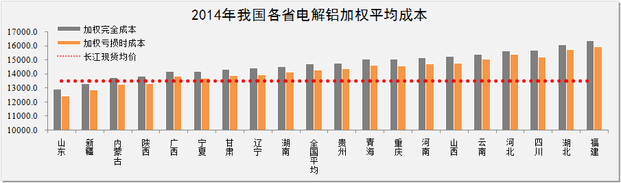 2014年我國(guó)電解鋁生產(chǎn)加權(quán)成本分析