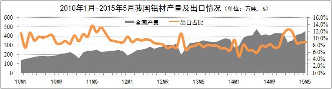 鋁材業務平穩增長。統計數據顯示,5月份國內鋁材產量456萬噸,環比增長6.8%;鋁材出口41萬噸,環比增長7.9%,占鋁材總產量的9%,占比環比略有上升。出口份額的增長即得益于國際市場經濟的復蘇預期,得益于財政部取消部分鋁產品15%的關稅政策。取消關稅的部分鋁材包括:非合金鋁條、桿;截面周長≥210mm的鋁合金制條、桿;截面周長<210mm的鋁合金條、桿。