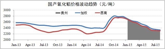 發(fā)稿時(shí)間:2015-08-22國產(chǎn)價(jià)格繼續(xù)下浮。報(bào)告期內(nèi),國產(chǎn)氧化鋁價(jià)格仍維持繼續(xù)下滑的基本趨勢,但整體降幅有所收窄。截至8月19日,國產(chǎn)日均價(jià)為2,325元/噸,月化同比下浮2.2%。其中,西南地區(qū)報(bào)價(jià)2,285元/噸,月化同比下浮0.9%;貴州報(bào)價(jià)2,285元/噸,月化同比下浮1.7%。目前,國產(chǎn)氧化鋁價(jià)格上浮機(jī)制尚未形成,預(yù)計(jì)第三季度氧化鋁價(jià)格將維持在2,250-2,450元/噸的均衡水平。