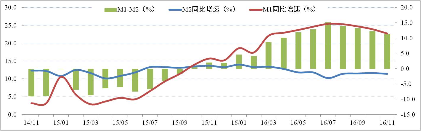 據(jù)央行數(shù)據(jù)統(tǒng)計(jì)顯示,中國11月M2貨幣供應(yīng)同比增速為11.4%,環(huán)比回落0.2個(gè)百分點(diǎn);M1貨幣供應(yīng)同比增速為22.7%,環(huán)比回落1.2個(gè)百分點(diǎn)。 M1與M2剪刀差進(jìn)一步縮小為11.3%。
