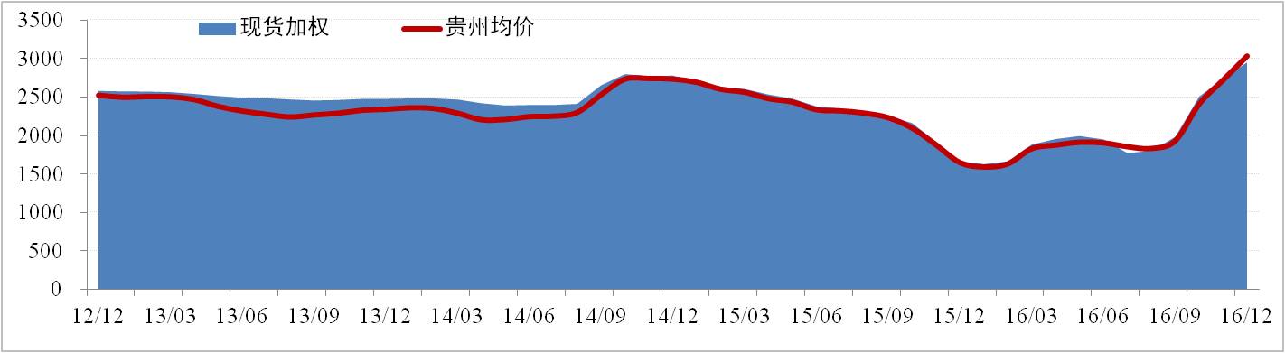 全國現(xiàn)貨價格方面,12月份國內(nèi)氧化鋁現(xiàn)貨價格的上行逐漸進入平臺期,西南地區(qū)氧化鋁價格反超北方地區(qū)價格。全國氧化鋁現(xiàn)貨加權(quán)價為2,955元/噸,環(huán)比上浮7.77%。貴州現(xiàn)貨方面,氧化鋁現(xiàn)貨加權(quán)價為3,035元/噸,環(huán)比上浮11.34%。12月份氧化鋁價格主要受電解鋁新產(chǎn)能持續(xù)釋放導(dǎo)致氧化鋁供應(yīng)略緊,以及山西重慶氧化鋁環(huán)保檢查影響。