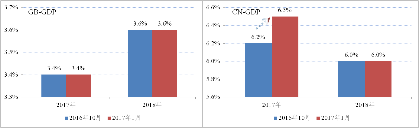 2016年全球經(jīng)濟可謂不溫不火。一方面主要國家經(jīng)濟繼續(xù)復(fù)蘇;另一方面全球經(jīng)濟增長乏力,多數(shù)國家經(jīng)濟增速仍低于潛在增長率。1月份,國際貨幣基金組織(IMF)發(fā)布最新《世界經(jīng)濟展望》報告中,預(yù)計中國2017年經(jīng)濟增速為6.5%,較上期上調(diào)0.3個百分點;維持世界經(jīng)濟3.4%不變。