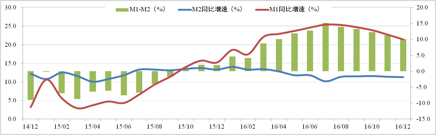 據(jù)央行數(shù)據(jù)統(tǒng)計顯示,中國12月M2貨幣供應(yīng)同比增速為11.3%,環(huán)比回落0.1個百分點;M1貨幣供應(yīng)同比增速為21.4%,環(huán)比回落1.3個百分點。 M1與M2剪刀差進一步縮小為10.1%。