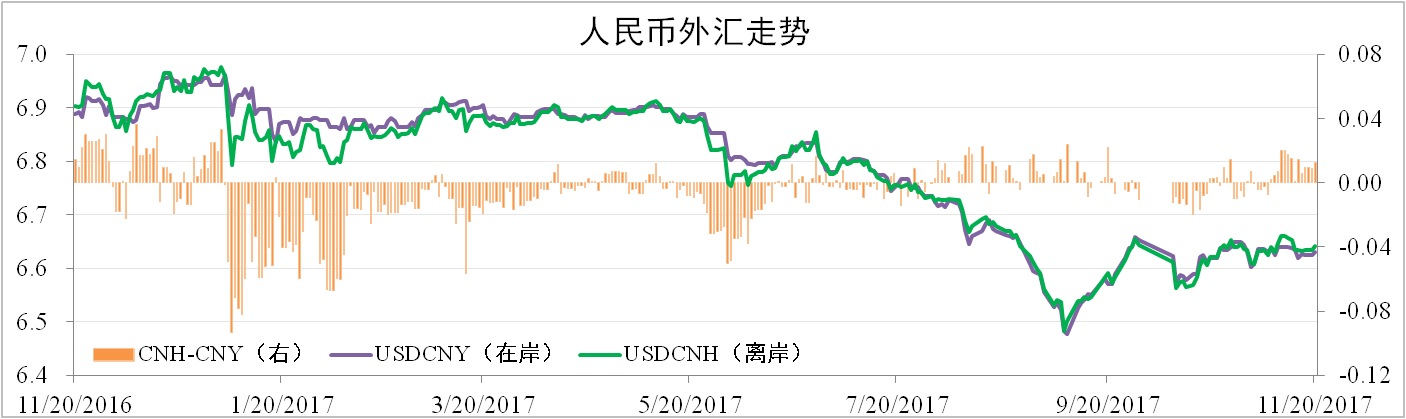 分析認(rèn)為:經(jīng)濟(jì)多頭主導(dǎo)疊加銀根收緊使得人民幣資金利率明顯上升,帶動(dòng)人民幣走強(qiáng)。而美聯(lián)儲(chǔ)收緊貨幣以及特朗普稅改預(yù)期將對(duì)美元有所提振,因此短期內(nèi)人民幣將延續(xù)震蕩走勢(shì),風(fēng)險(xiǎn)在于特朗普稅改是否順利。