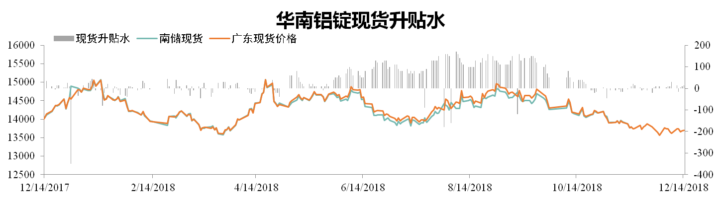 截至12月14日,南儲華南鋁錠現(xiàn)貨價報13680元/噸,環(huán)比上漲0.07%,廣東現(xiàn)貨成交價報13695元/噸,環(huán)比上漲0.11%。全國鋁錠庫存為136.2萬噸,環(huán)比下降6.09%。南海庫存為18.6萬噸,環(huán)比下降14.52%。