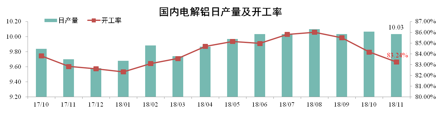 分析認為:11月鋁價市場低迷,高成本企業(yè)減產(chǎn)居多,加之采暖季影響,電解鋁產(chǎn)量下降。鋁價的大幅下跌是減產(chǎn)的根本原因,12月電解鋁下游需求或繼續(xù)疲軟,預計產(chǎn)量仍有下行趨勢。