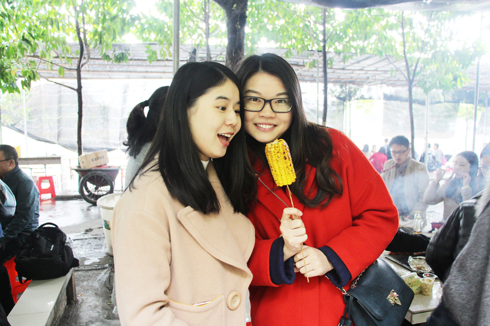邊烤邊吃、邊吃邊聊、互相指導,同時還不忘相互遞送香噴噴的成品,在協作和關愛中,享受個中樂趣。
