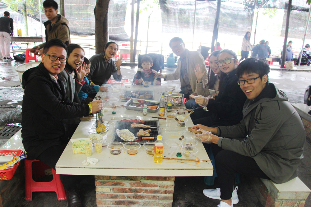 當天陰雨綿綿,寒風來襲,即使與預想的明朗天氣大相徑庭,但仍然沒有影響員工們出游的好心情。中午,大巴從集團本部出發,抵達大夫山森林公園。燒烤前,活動負責人拿出精心準備的生日蛋糕,在現場為11月生日的壽星們慶生,讓大家參與了一次新奇的戶外慶生會。小小的蛋糕寄托了大家對壽星們的祝福。