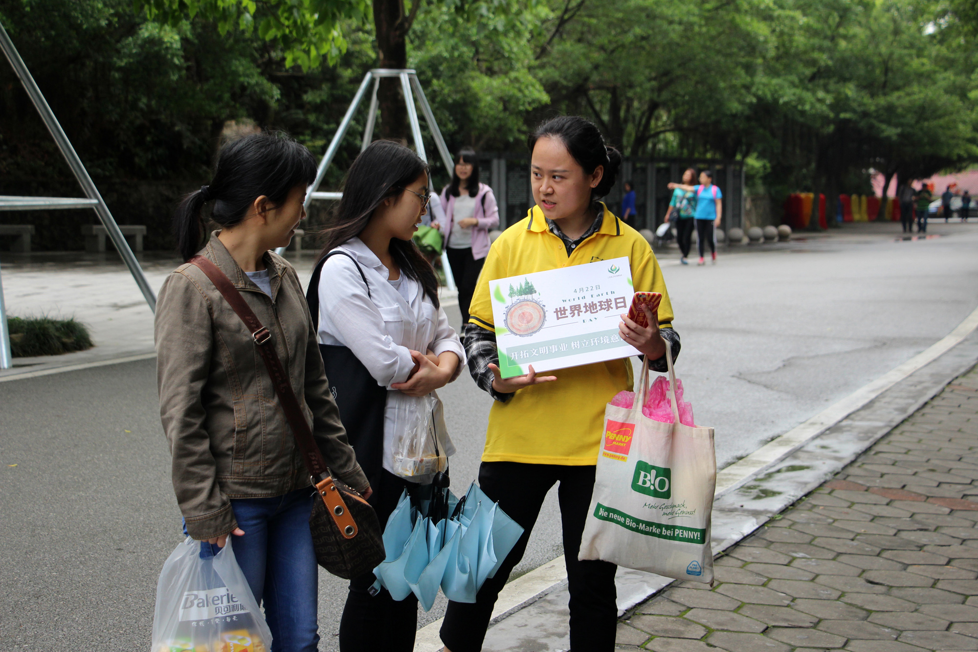 9點整,白云山腳下出現了一道亮黃色的特別風景,雖然天突降大雨,但仍澆不滅大家的熱情。