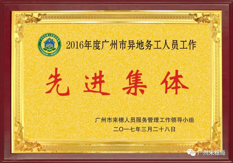 日前,經廣州市來穗人員服務管理工作領導小組通報,廣鋁集團被授予2016年度廣州市異地務工人員工作先進集體榮譽稱號。
