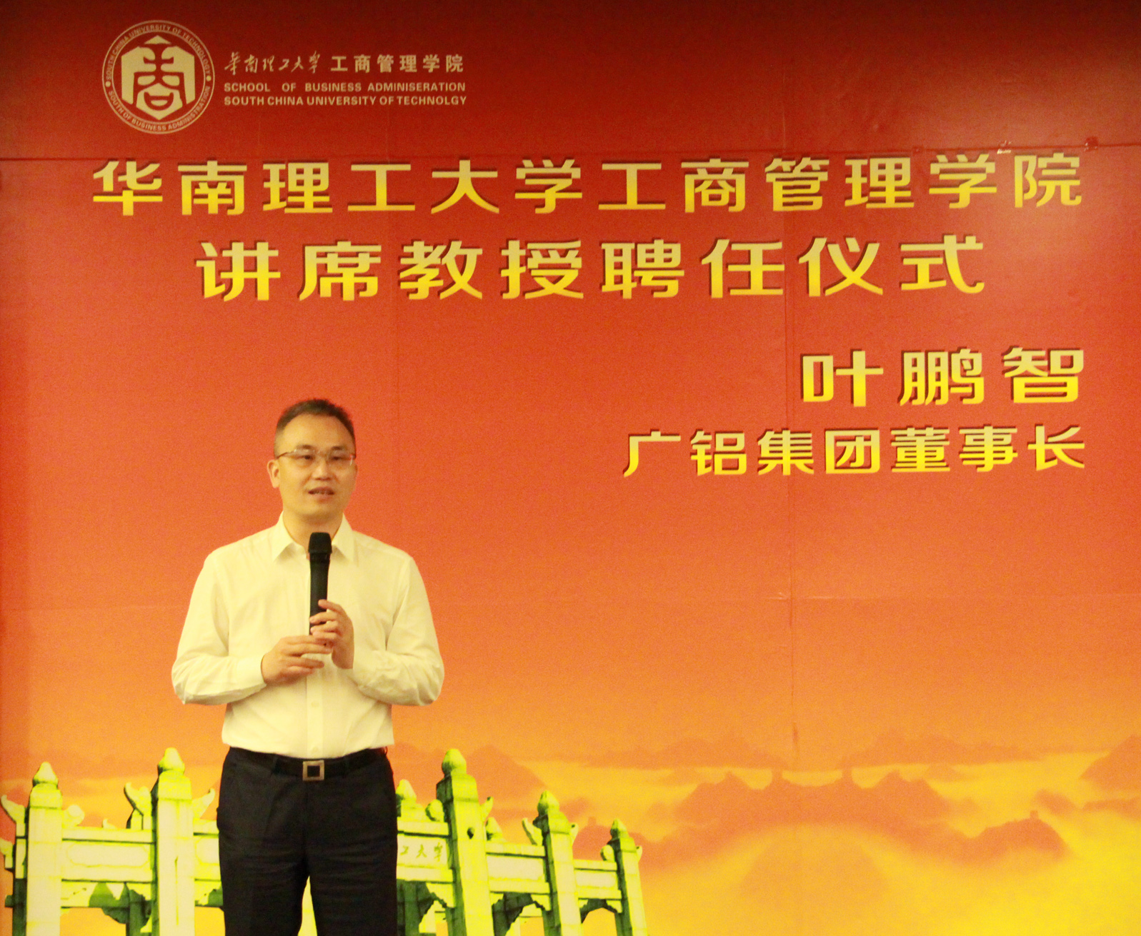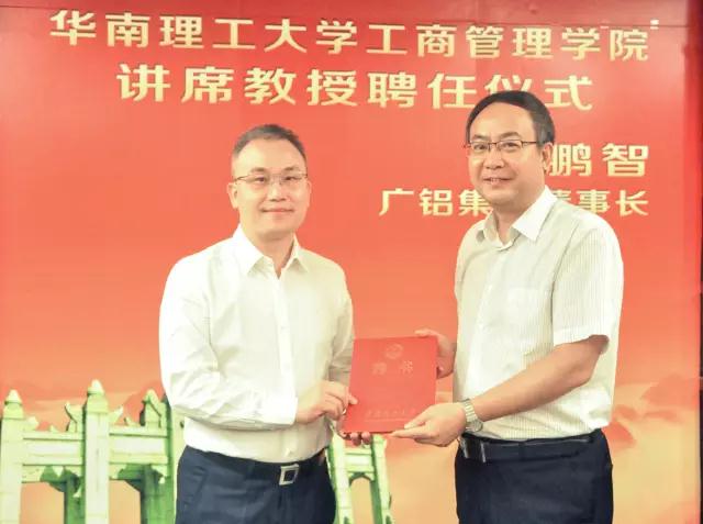 發稿時間:2017-06-196月19日下午,在華南理工大學12號樓舉行了一場簡單而隆重的聘任儀式,正式聘任廣鋁集團葉鵬智董事長為華南理工大學工商管理學院講席教授。