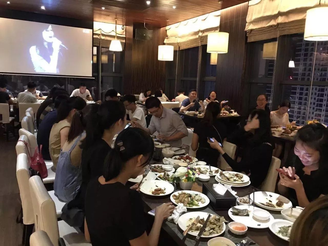 盈基投資公司多個項目分布在不同地方,雖然人不能聚集在一起,但心都連在一起。你看,大家都選擇了聚餐來慶祝中秋。