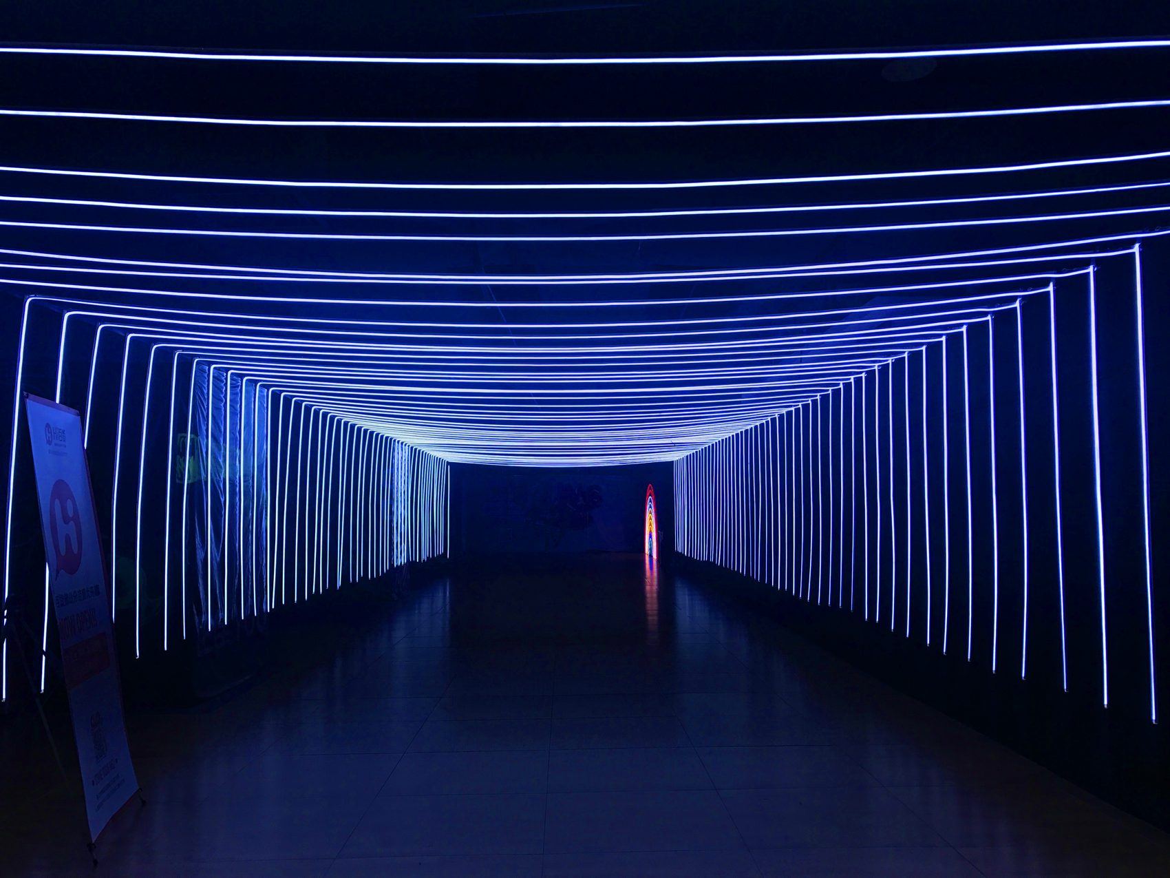 由光電組成的時(shí)光隧道,置身其中,仿佛穿梭于時(shí)空隧道,追溯過去探尋未來。