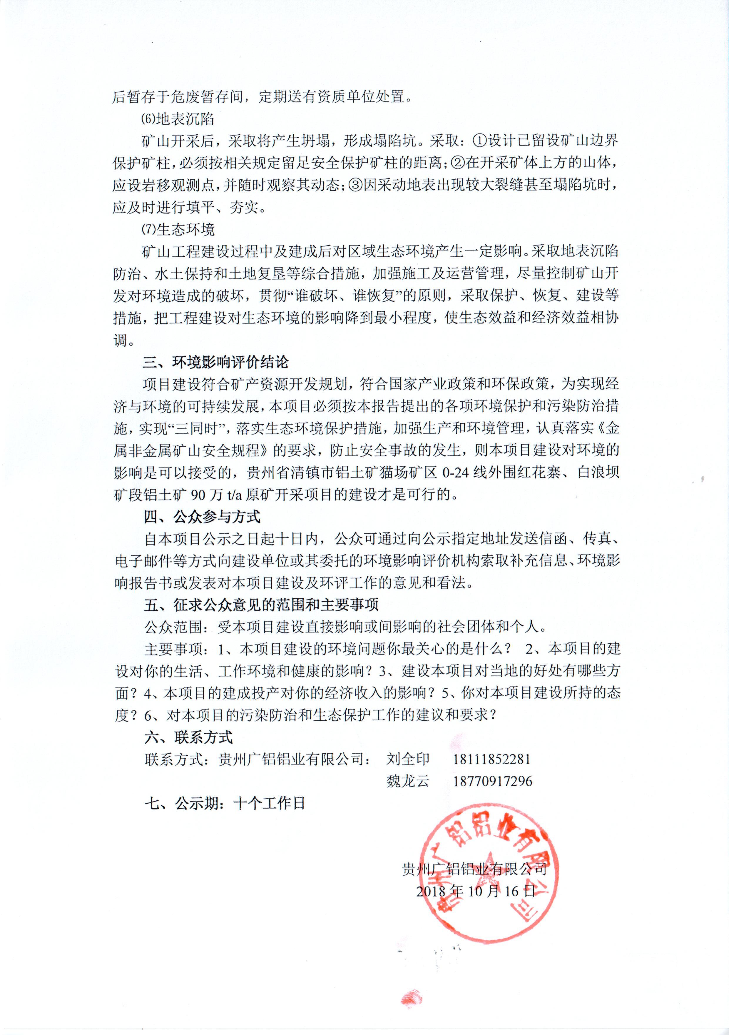 新聞中心 集團動態(tài) 行業(yè)資訊 廣鋁期刊 下載 廣鋁手機APP 廣鋁 for Android 手機助手掃一掃 廣鋁 for iPhone 手機助手掃一掃 ———————————— 廣鋁集團微信公眾號 添加方式: 微信號請搜索:GaluminiumGroup 中文昵稱請搜索:廣鋁集團 或直接用手機微信 掃描左側(cè)二維碼 ———————————— m.hongboidc.com 貴州省清鎮(zhèn)市鋁土礦貓場礦區(qū)鋁土礦項目環(huán)境影響評價第二次公示 發(fā)稿時間:2018-10-18
