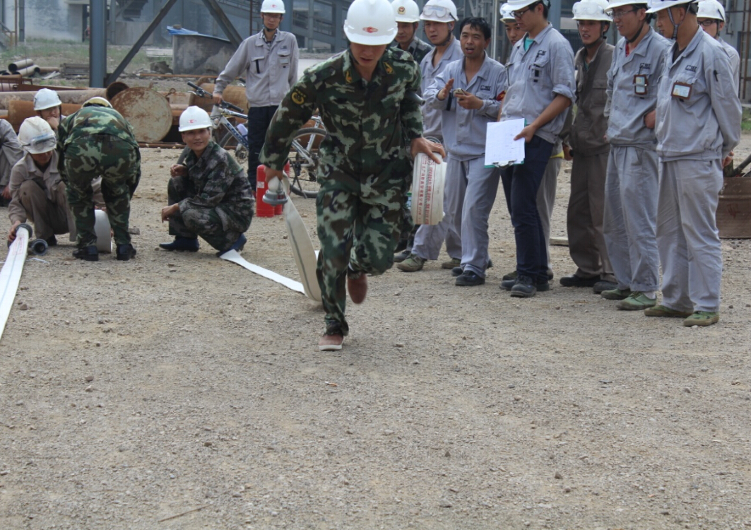 為普及消防安全知識,提高員工安全消防意識、安全防范與自救能力,提高消防設施、設備、安全防護器材的使用能力,加強企業干部職工檢查消除火災隱患能力、撲救初期火災能力、組織疏散逃生能力和消防宣傳教育能力的消防安全“四個能力”建設,有效防范火災事故的發生以及最大限度減少和降低事故損失,并根據安全生產月活動方案,2014年6月13日,安環處組織公司各車間、處室人員進行了消防水帶、空氣呼吸器使用比賽,在比賽后組織各參賽人員進行滅火器實操演練。