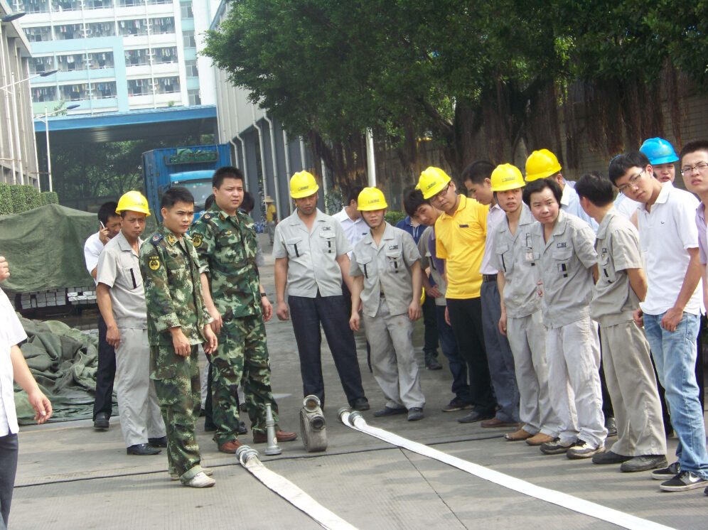 然后,武警官兵為大家示范了干粉滅火器的使用方法,并讓所有參與演練的人員都實際操作了一次干粉滅火器現場滅火。學習了干粉滅火器的使用方法后,武警官兵又開始教大家如何正確使用消防水槍,水帶。當發生重大的火災需要從遠處、高處救火時,消防水槍、水帶是救災的必須物件。武警官兵為參與人員示范了如何抖開水帶、收起水帶,如何讓水帶與消防水栓連接,如何安裝水槍噴頭等??赐晡渚俦氖痉逗螅蠹议_始學習操作。在操作過程中,因為動作不規范,不熟練,出現了不少的問題,如不能正確地抖開水帶,連接好消防水栓等,武警官兵們不厭其煩地為大家一次次的講解和示范,直到所有人都完全掌握了操作要領。