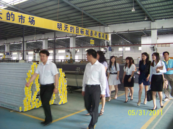 2011年6月國內營銷中心、營銷策劃中心、質量管理部主要領導分別對廣東廣鋁鋁質幕墻工程有限公司和廣州市鵬迪裝飾工程有限公司進行了拜訪,拜訪過程中雙方就現今的市場情況進行了分析,并對子公司對公司總部在生產、服務上的意見和建議進行了征集。良好而有效的溝通,為更加順暢緊密的合作奠定了堅實的基礎。