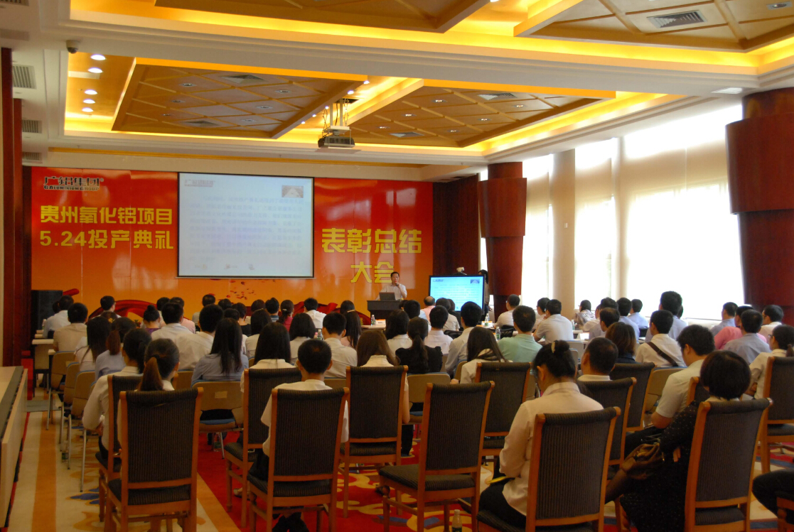 2012年6月9日,廣鋁集團(tuán)在江高行政辦公樓二樓多功能廳舉行了貴州氧化鋁項(xiàng)目5.24投產(chǎn)典禮表彰總結(jié)大會(huì)。集團(tuán)總部及各分公司中高層管理干部、投產(chǎn)典禮所有廣鋁工作人員出席了會(huì)議,貴州公司也通過(guò)視頻連線參加了本次大會(huì)。集團(tuán)王常務(wù)副總裁在會(huì)上做了重要講話,大會(huì)最后對(duì)貴州5.24投產(chǎn)典禮中表現(xiàn)突出的一批工作人員進(jìn)行了表彰。