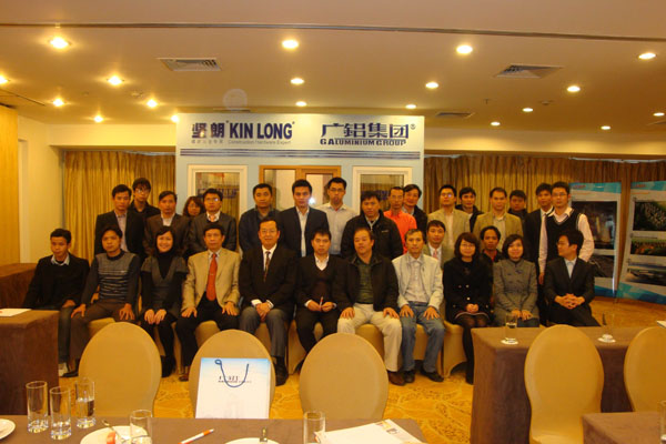 在推廣會之前,我集團公司還參加了在3月24至30日舉辦的當地著名的越南(河內)建筑展,了解到當地建筑市場以PVC材料為主,此材料大概占市場總量的70%,其中以實德型材和海螺型材占據較大的市場份額,門窗加工企業也較多,多數以加工PVC材料為主,而涉及鋁型材加工的企業甚少。另外,我們還發現了當地企業的一個共性,所有加工企業要不專注PVC,要不就是PVC兼鋁合金,當中沒有純鋁合金門窗加工的企業。而且大多數工廠現正處于轉型階段,大有由主流PVC材料的基礎上轉向鋁型材加工的趨勢,且勢頭較為強勁,所以鋁型材在越南的開發前景非常大,這正是我們品牌進駐越南的最佳時機。正所謂“長風破浪會有時,直掛云帆濟滄海”,我們廣鋁人在面對市場開拓的困境時就是要抱有這樣的決心,堅定我們的步伐,讓廣鋁品牌享譽全球!